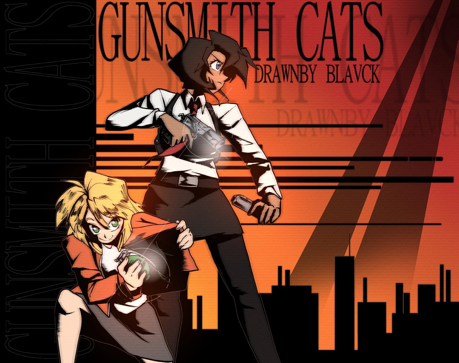 Irene “Rally” Vincent dirige la armería “Gunsmith Cats”, pero también trabaja como cazarrecompensas , lo que da origen a muchas de las historias. En ambas actividades la ayuda su compañera de piso, la exprostituta “Minnie” May Hopkins. Rally es una experta tiradora de combate y una excelente conductora. May es experta en explosivos, conoce a la perfección el funcionamiento y los múltiples usos de todo tipo de artefactos explosivos. Más tarde, Misty Brown, una joven ex ladrona y experta en abrir cerraduras, se une al equipo, y también está Becky Farrah, una valiosa, aunque costosa, fuente de información sobre el mundo del hampa.